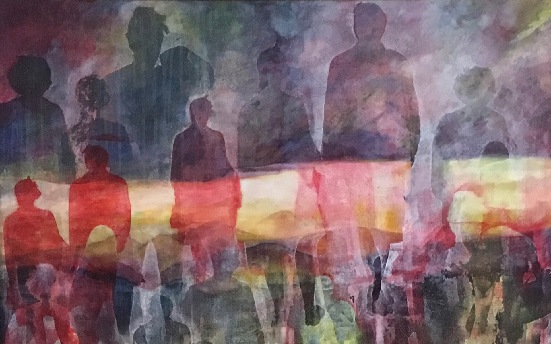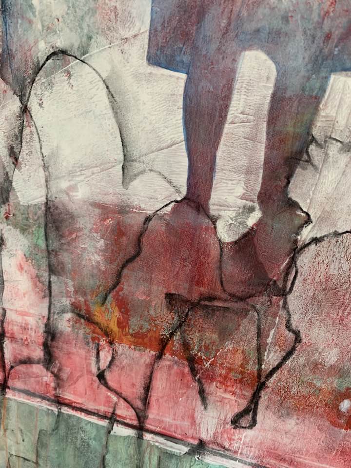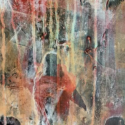 Mixed media on 7ft x 2inch wood strips with steel bolts. £10,000 (all proceeds go to 'helprefugees' charity)